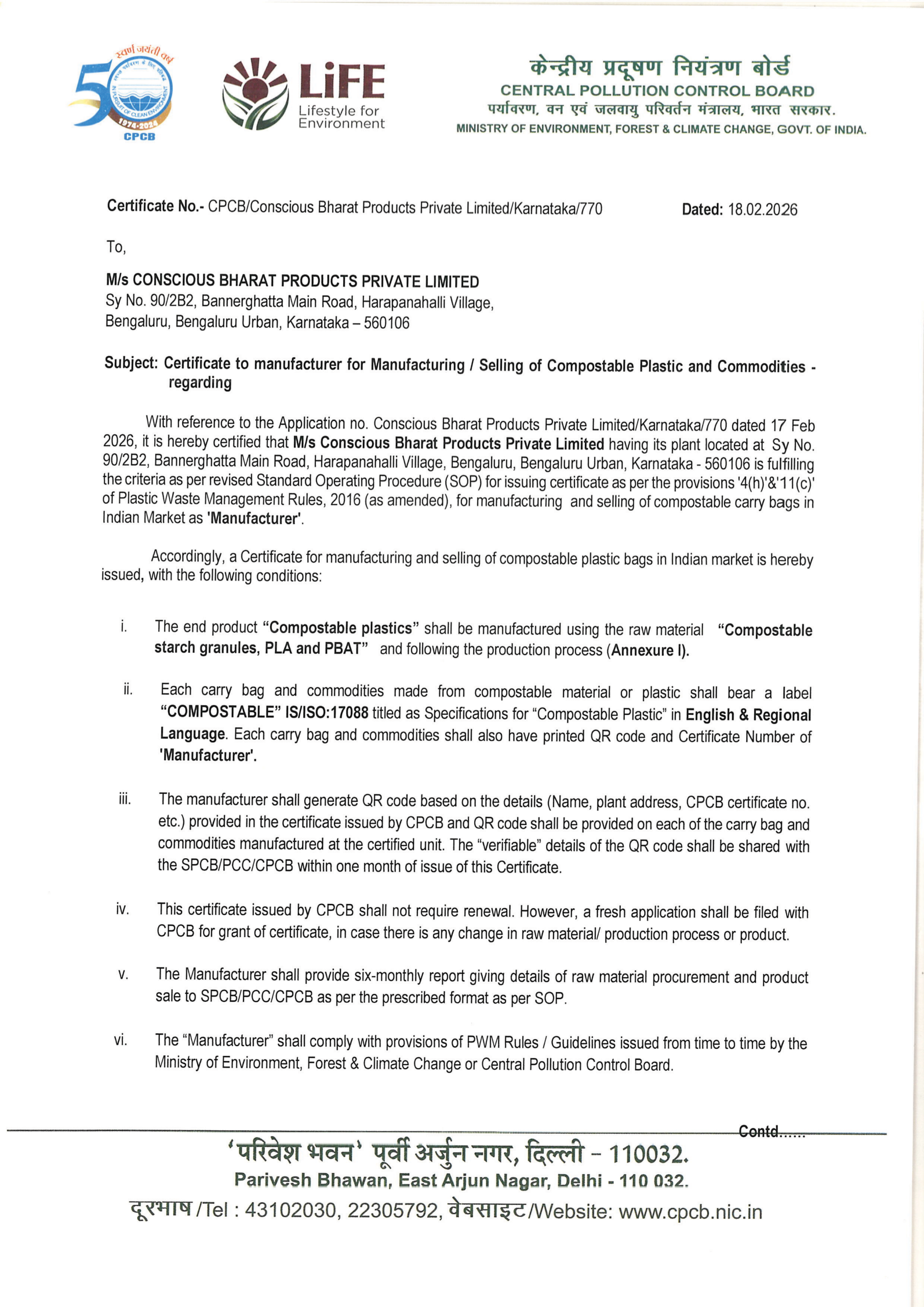 CBPPL CPCB Certificate